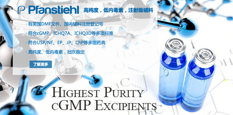 “熱烈祝賀Pfanstiehl的注射級甘氨酸Glycine(G-140)喜獲CDE登記號F20250000403, 這是Pfanstiehl產品獲得的第18個CDE登記號!”甘氨酸在醫藥輔料制劑中應用廣泛,, 可作為緩沖劑,增溶劑,穩定劑等,具有諸多優勢。Pfanstiehl秉承一貫高品質理念,為滿足全球生物制藥行業對于高品質甘氨酸的需求,隆重推出的注射級甘氨酸Glycine (G-140), 具有超高純度,超低內毒素,超低金屬殘留的特點,單獨檢測29種金屬離子,并且新增DNA,RNA,DNA酶,RNA酶和脂肪酶,亞硝酸鹽等多項質量指標的檢測,符合多國藥典規定(USP, EP, BP, JPE, ChP),可用于生物治療性藥物和疫苗的生產。產品信息:· 產品名稱:Glycine, High Purity, Low Endotoxin, Low Metals, USP, EP, BP, JPE, ChP (G-140)· 中文名稱:甘氨酸· 分子式:C2H5NO2· 分子量:75.07 g / mol· CAS號:56-40-6· 產品貨號:G-140產品特點: · 超高純度,超低內毒素,超低微生物含量,超低金屬雜質殘留· 質量指標新增DNA,RNA,DNA酶,RNA酶,脂肪酶和亞硝酸鹽檢測· 符合多國藥典:USP, EP, BP, JPE, ChP· 符合ICH Q3D標準· 符合GMP標準· 已獲DMF和CDE登記號 產品應用:· 緩沖劑· 穩定劑· 增溶劑如果您對Pfanstiehl注射級別Glycine G-140感興趣,歡迎聯系Pfanstiehl 中國區代理商北京西美杰科技有限公司獲得如下詳細的產品概況說明文件和測試樣品。Pfanstiehl Inc.最新產品系列如下,歡迎聯系北京西美杰科技有限公司獲取100g裝免費樣品。北京西美杰科技有限公司為Pfanstiehl中國代理,為客戶提供完善的技術支持與售后服務。歡迎撥打西美杰客服電話400-050-4006或者登陸網站www_xmjsci_com.zhutan888.com了解更多信息。 更多>